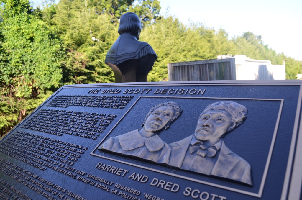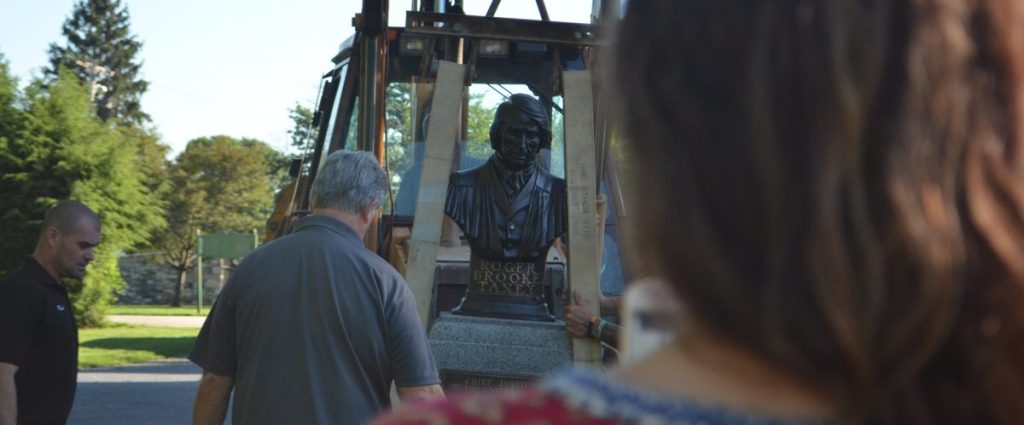 (Above, a photo of Roger B. Taney bust that had been moved from outside the Frederick Court House to a nearby cemetery in Frederick, MD. I happened to visit the same day they were moving the bust into its new place. This was one of the most surreal experiences of my life. )