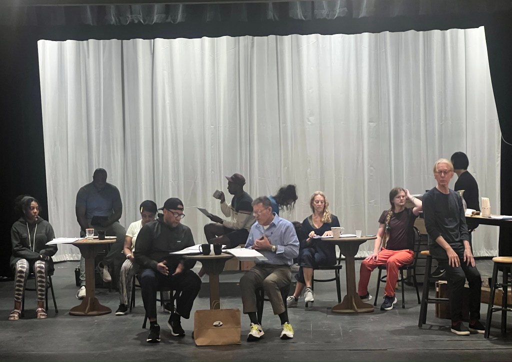 (At The Village Players in workshop for AMERICAN ROT. Actors featured: Brittaney Chatman, Eliott Johnson, Richarda Abrams, Marcus Naylor, Lawrence Stallings, Christian Baskous, April Aberdeen, Myla Pitt, Max Gehring, Timothy Doyle and Josh Brown).